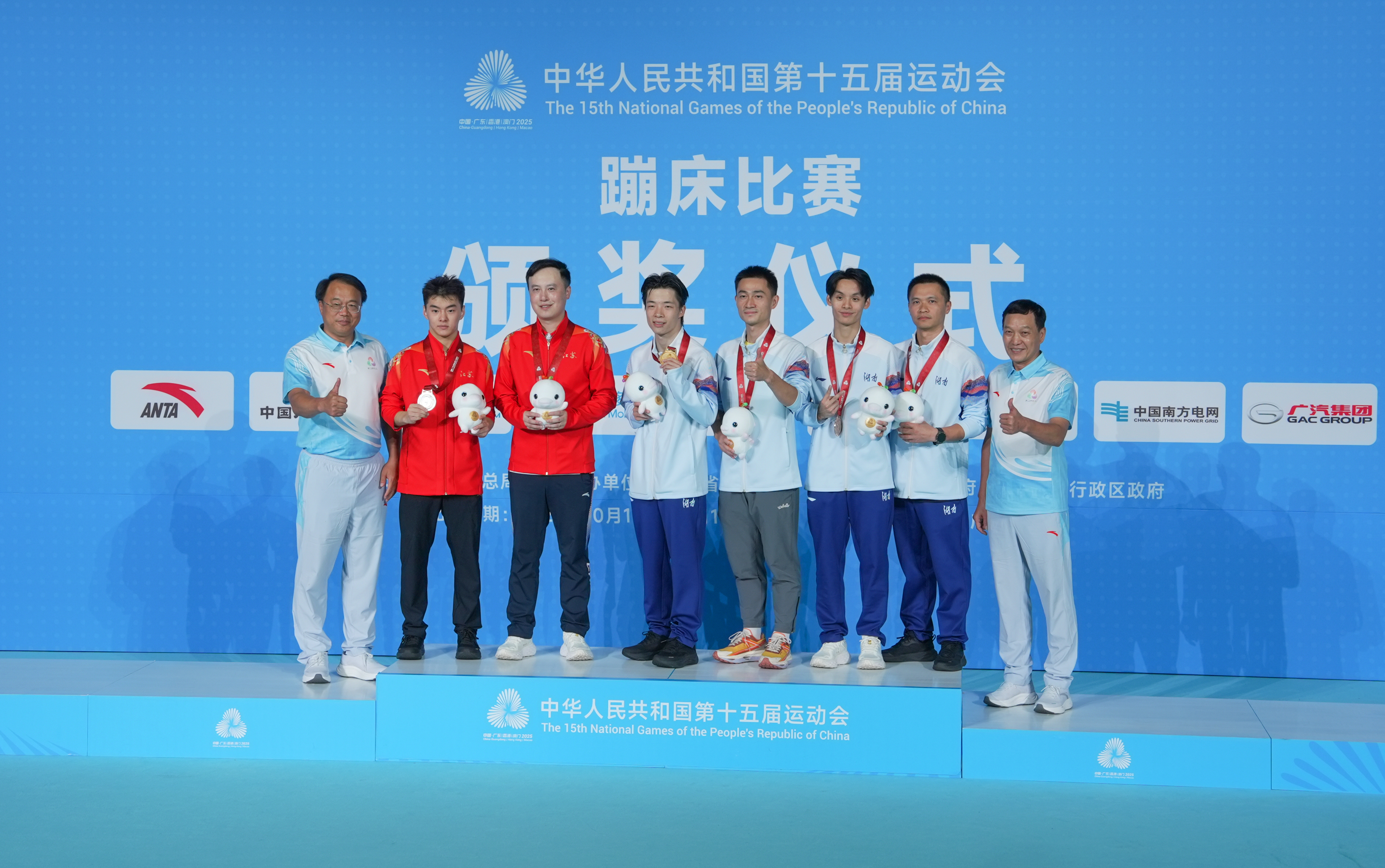 第十五届全国运动会蹦床项目个人决赛10月12日下午在广州体育馆圆满落幕。山西队选手胡译乘获得女子个人冠军尚红网 ,天津队选手朱雪莹获得亚军,江苏队选手邱铮获得季军;男子个人冠军归属湖南队选手严浪宇,江苏队选手王梓赛获得亚军,湖南队选手贺龙雨获得季军。至此,本届全运会蹦床项目比赛全部结束。