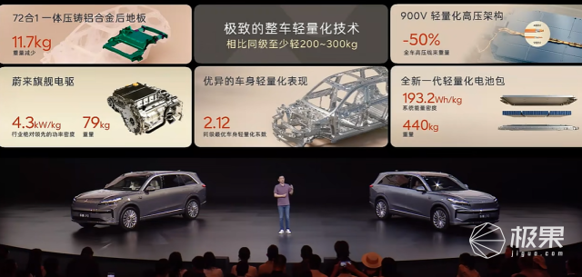 官方表示,该车后驱版仅2250kg,四驱版也不过2360kg,这可能是目前轻量化水平最高的三排SUV。而轻量化优秀的好处,自然就是加速更强、续航更长、车身抑制能力更好了。