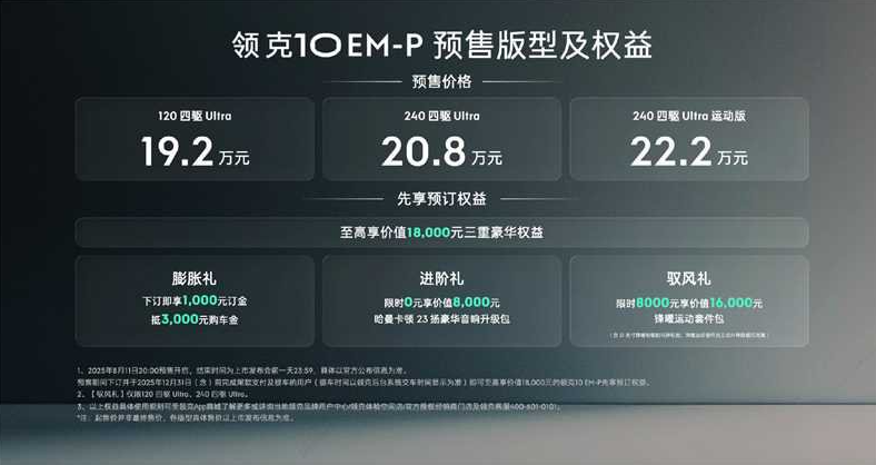 在风景如画的浙江安吉,领克汽车近期举办了一场别开生面的试驾活动,主题围绕其最新力作——领克10 EM-P展开。这款中大型电混轿车自8月11日预售以来,便以19.2万元起的亲民价格金勺子,以及全面升级的动力、智能与豪华配置,迅速吸引了市场的广泛关注。